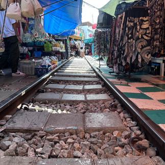 השוק השני שביקרנו בו היה שוק הרכבת, הדבר ההזוי ביותר שראיתי עד עכשיו. הדוכנים של השוק - אוכל, דגים, פירות ים, קוקוסים, גלישה, בגדים, מזכרות ועוד - נמצאים משני הצדדים של פסי רכבת וברגע שהרכבת מגיעה, המוכרים מזיזים הצידה את כל הציוד שלהם ונותנים לרכבת לעבור. אמנם הרכבת נוסעת מאוד לאט במסילה, אבל המעבר ממש צפוף ויש המון תיירים שעומדים ומצלמים ודוכנים שהוזזו רק ממש מעט כדי שיהיה מעבר לרכבת. הזוי. משם המשכנו לפארק לומפיני, שם ראינו לטאות כוח ענקיות מסתובבות חופשי. בשלב כולשהו הבחנו בענן גדול מתקרב והבנו שעוד מעט ירד מבול. יצאנו מהר מהפארק ולקחנו טוקטוק למסעדת המבורגרים. ברגע שנכנסנו לטוקטוק, התחיל לרדת מבול. בזמן הנסיעה ירון ואני נרטבנו, כי ישבנו בצדדים של הטוקטוק הפתוח. למרות שמסעדת המבורגרים לא הייתה הכי מוצלחת והגיעו לכולנו מנות קטנות יחסית, כך שדי התבאסנו, שאר היום היה מלא חוויות טובות.