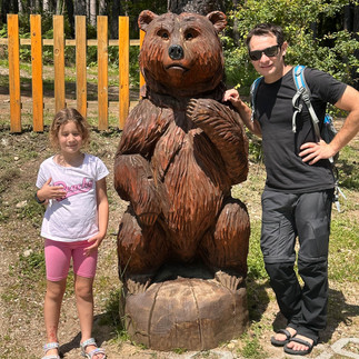 בסוף השבוע שכרנו רכב ונסענו עם משפחת מזור לטיול מחוץ לבנסקו. נסענו לרזלוג, בה אכלנו ארוחת בוקר במסעדה ממש נחמדה שהיה בה כל מבחר ביצים אפשרי וכל אחד יכל לבחור את סוג הביצה שהוא רוצה. לילדים בררנים כמו שלנו מסעדה כזו היא מושלמת. משם נסענו לתצפית על העיר שכללה עליה בהרבה מדרגות. בתצפית עצמה היה פסל של DNA שבנוי ממדרגות ואפשר לעלות עליו וגם מרפסת זכוכית ממנה אפשר לראות את הנוף מעל כל העיר. בנוסף, היה שם משחק geocaching אבל לצערנו לא הצלחנו למצוא את המטמון. בחזור, ספרנו כמה מדרגות יש ובסוף הירידה כל אחד אמר מספר שונה. עשינו ממוצע בין כולם ויצא לנו 382 מדרגות. מעניין כמה מדרגות יש שם בפועל. ניסינו לחפש באינטרנט אבל לא מצאנו תשובה. משם המשכנו לאטרקציה הבאה - פארק שיקומי לדובים מרקדים. פארק זה נועד להצלת דובים שעברו התעללות כדי לגרום להם לרקוד. בתוך הפארק עצמו הלכנו עם מדריך במסלול עפר מגודר וראינו את הדובים חופשיים בחוץ. בפארק עצמו יש 18 דובים אנחנו זכינו לראות רק ארבעה ורובם ישנו. קצת מבואסים מהפארק המשכנו הלאה לפארק שעשועים עם טרמפולינות, מתנפחים ורכבת הרים שממנה הילדים מאוד נהנו. אחרי שמיצינו את הרכבת נסענו למסעדת דגים בה אפשר היה לתפוס את הדגים ולאכול אותם. המסעדה מעוצבת יפה ונמצאת על אגם בו מגדלים את הדגים. יש לה חצר גדולה, ברווזים וטרמפולינה וגם האוכל בה טעים. אחרי הארוחה, היינו עייפים אך החלטנו לנצל את הרכב עוד קצת ולנסוע להרים ליד בנסקו. גילינו הרבה אתרי סקי, מפלים ואפילו שיחקנו בשני geocaching ומצאנו את המטמון. אופק היה מבסוט כי זה היה המטמון הראשון שהוא מצא לבד! המטמון היה בעץ עתיק, בן 1200 שנים. בסיום היום חזרנו הביתה עייפים ומאוד מרוצים.