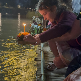 פסטיבל האורות התאילנדי המסורתי נקרא לואי קרטונג (לואי = אור קרטונג = צף). בפסטיבל נהוג להשיט פרחים בנהר ולהפריח עששיות אל השמיים. בפאי הפסטיבל ערך שלושה ימים, בwalking street היו תהלוכות של רכבים מקושטים יפה ועליהם ישבו אנשים לבושים בתלבושות מסורתיות. הפסטיבל עצמו התקיים ליד הנהר. היו בו הרבה דוכני אוכל וגם נמכרו סלסלות עם פרחים ועששיות פורחות. מעיין הכינה בחוג יצירה סלסלה יפה עם פרחים והשיטה אותה בנהר. היה לאחת המשפחות יוזמה יפה והיא חילקה סרטים צהובים למשפחות הישראליות, סמל של המאבק להחזרת החטופים. אנחנו וכל המשפחות הישראליות קנינו כדורים פורחים קשרנו אליהם את הסרטים הצהובים והפרחנו את הכדורים יחד בתפילה משותפת להחזרת החטופים הביתה מהר ובשלום. היה מאוד מרגש לראות שגם כשאנחנו לא בארץ אנחנו מאוחדים.