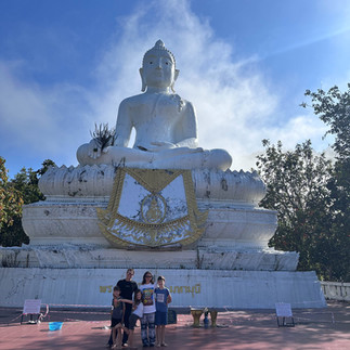 מכל מקום בפאי אפשר לראות מרחוק, על פסגת ההר, פסל בודהה ענק בצבע לבן. שבוע לפני שאנחנו עוזבים את פאי אנחנו מבינים שלא נוכל לעזוב בלי לראות את הפסל הזה מקרוב. לכן באחד הימים קבענו לנסוע לשם מוקדם בבוקר עם משפחה חברה. את הרכבים החננו ממש קרוב למדרגות והתחלנו לעלות. כמובן שהילדים רצו את זה מאוד מהר וחיכו לנו, ההורים, למעלה. כרגיל כשהם מגיעים לפנינו הם אומרים לנו משפטים כמו כמה זמן אפשר לחכות לכם, למה אתם עולים כל כך לאט (אין מה לעשות אנחנו לא בגילכם וגם לא בכושר J). אחרי 272 מדרגות הגענו לפסל בודהה ענק לבן ומרשים, אבל מה שיותר הרשים אותנו היה הנוף המהמם הנשקף למרחקים על כל האזור של פאי. אחרי שהצטלמנו ירדנו את כל המדרגות ונסענו הביתה לאכול ארוחת בוקר.