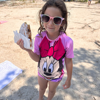 את היום האחרון שלנו ביוון החלטנו לבלות בכלקידיקי. שכרנו רכב ליום אחד ונסענו לסיטהוניה שזו האצבע השניה של כלקידיקי, המעט יותר מרוחקת מסלוניקי. החלטנו לנסוע לשם כי כפי שהבנו היא אמורה להיות האצבע הפחות מתויירת, עם חופים יותר יפים ופחות צפופים. החוף הראשון שביקרנו בו היה Karydi beach הופתענו לגלות שלמרות מה ששמענו היו בו המון אנשים. החוף עצמו היה נחמד עם מי טורקיז ומים רדודים, היה קריר להיכנס למים אבל נכנסנו בכל זאת והתרגלנו די מהר. בזמן שהינו בחוף עברו שם אנשים שמכרו תירס ובייגלה עם סוכר, הילדים התלהבו אז קנינו. אחרי כמה שעות בחוף המשכנו לחוף הבא בשם Kavourotrypes beachשהתגלה כחוף מהמם. אחד היפים שביקרנו בהם. בצד אחד שלו היו סלעים שאפשר לשבת עליהם ולרדת מהם לחוף ובצד השני, היה מפרץ חולי קטן ועליו כיסאות מתקפלים שולחנות שמשיות ומסעדה שבה מזמינים והאוכל מגיע לחוף. החלטנו להתמקם בצד הזה כי היינו רעבים. הזמנו אוכל ובנתיים נכנסנו לים למרות שגם שם היה קריר. המים היו צלולים עד כדי כך שאפשר היה לראות את החול מתחת למים. נהננו מכל רגע ושמחנו שהגענו לחוף הזה, שאנחנו מטיילים ויכולים להכיר מקומות כאלו מגניבים. בצער רב, בגלל השעה המאוחרת ובגלל שלא רצינו לנהוג בלילה, חזרנו לסלוניקי. החזרנו את הרכב - משרד השכרת הרכב כבר היה סגור אבל אפשר היה לחנות את הרכב בחניון תמורת 10 יורו ולהשאיר את המפתח אצל השומר, וזה מה שעשינו. משם המשכנו להסתובב קצת בסלוניקי וישבנו לאכול ארוחת ערב אחרונה ביוון.