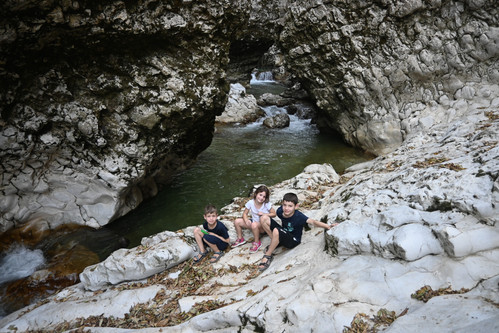 כשעה נסיעה מקוטאיסי ישנם מפלי מרטוולי. הנסיעה לשם עוברת בהמון כפרים קטנים עם המון פרות הרובצות על הכבישים. הגענו לחניון ושם הציעו לנו לקחת מדריך שיקח אותנו לחמש מקומות של תצפיות ומפלים (בהתחלה הם רצו 180 לארי אבל הבינו שאנחנו מתלבטים, בגלל שהיה כבר סוף היום עשו לנו הנחה 120 לארי). אחרי התלבטות החלטנו לא להסתבך ולקחת מדריך. המדריך ישב מקדימה מעיין ישבה עלי וירון נהג. בדיעבד זה היה מצויין שלקחנו אותו, כי לבד לא היינו מגיעים למקומות הללו. המדריך לקח אותנו לחמש אתרים יפים הכוללים מפלים ומקומות לרחצה בנהר, הוא עזר למעיין ללכת והיה סופר נחמד וסובלני לילדים. המפלים מאוד מרשימים במיוחד המפל האחרון שהיינו בו. בגלל שאין ים באזורים הללו המון מקומיים הולכים למפלים ואפילו עולים על הסלעים וקופצים למים. בדרך חזרה שמענו פודקסטים, אנחנו אוהבים לשמוע את 'היסטוריה לילדים' ו'התשובה'.